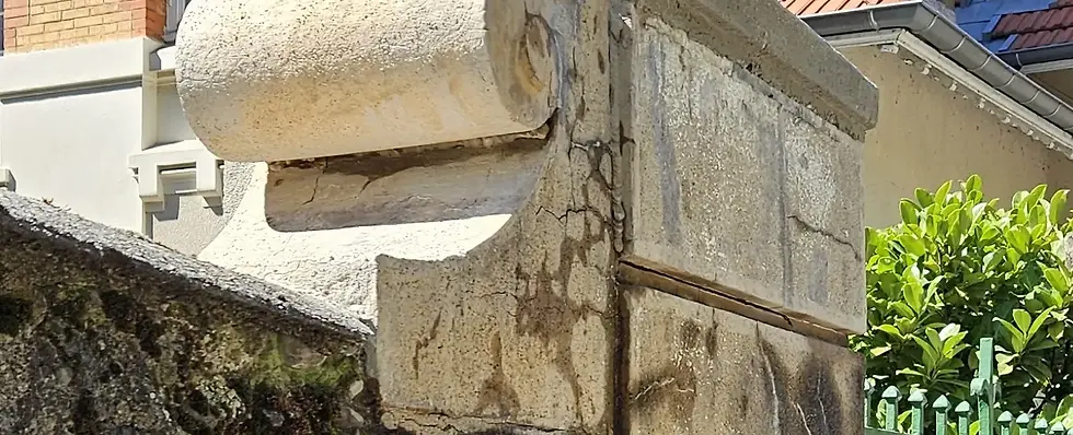 Le chapeau du pilier présentait des fissures profondes et une dégradation avancée, rendant l’ensemble instable et potentiellement dangereux.